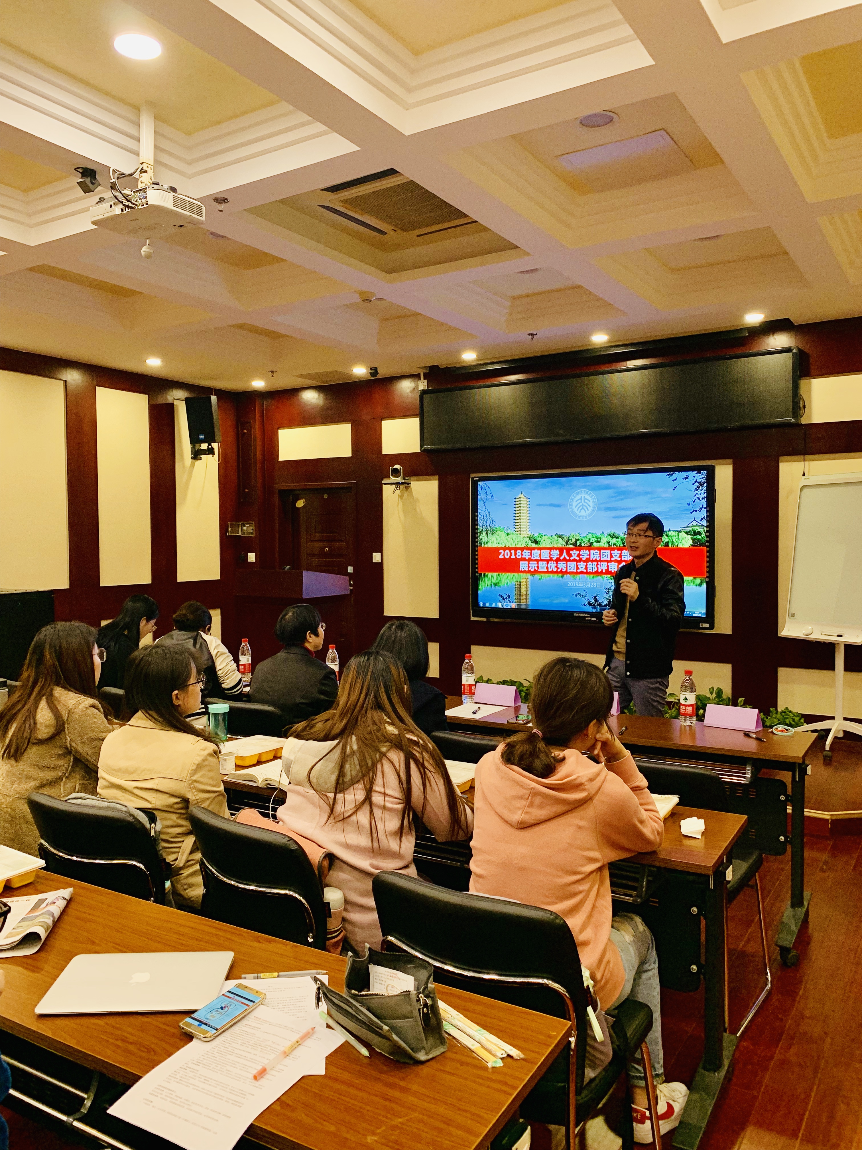 2019年3月28日,水仙直播 团支部风采展示活动在逸夫楼716顺利举办,水仙直播 党委副书记于新亮老师、哲学与社会科学系党支部书记齐芳老师、应用语言学系党支部书记吴朝霞老师、教学科研办公室副主任孙小菲老师以及院团委书记王心彤老师参加了本次活动并担任评委,活动还邀请了各支部支委会成员和班级学生代表参加,会议由团学联组织部部长麦丽克扎提主持。
