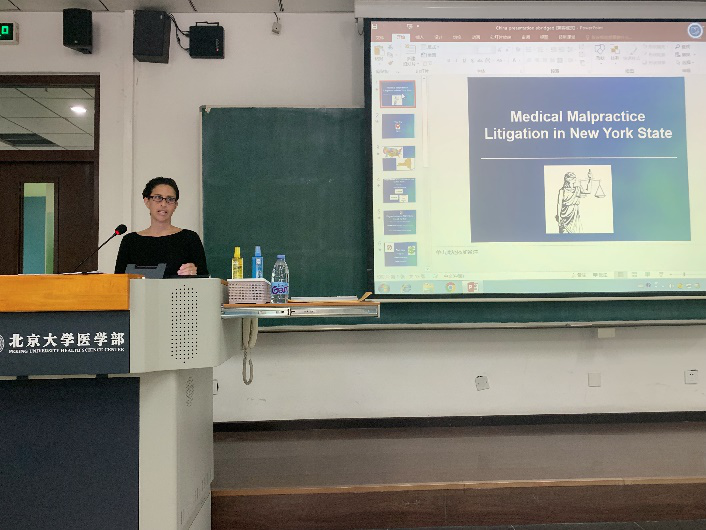 在这场讲座中,Dejana Perrone博士首先介绍了美国的政府体制,纽约州的法院体系以及不同级别法院的职能。接下来,她介绍了侵权法的要素和医疗事故的界定。医疗事故作为医疗侵权的类型之一,可以采用侵权法的一般理论进行分析。然而医疗过失作为一种与专业性相关的过失,与普通过失又有所差异。随后,她介绍了可以作为医疗事故诉讼例的控方类型和被控方类型,以及构成初步医疗事故案件的三个要素。接着,Dejana Perrone博士列出了医疗事故诉求的几种常见类型,即错误诊断、治疗失败、缺乏知情同意、代理责任、以及欺诈,并通过案例进行了解释。最后,她介绍了医疗事故相关法律新进展,并结合癌症/肿瘤误诊、体外受精过程中的医疗事故、手术遗留异物于体内等案例进行了详细介绍和分析。会后,师生还就感兴趣的问题与Dejana Perrone博士进行了讨论。